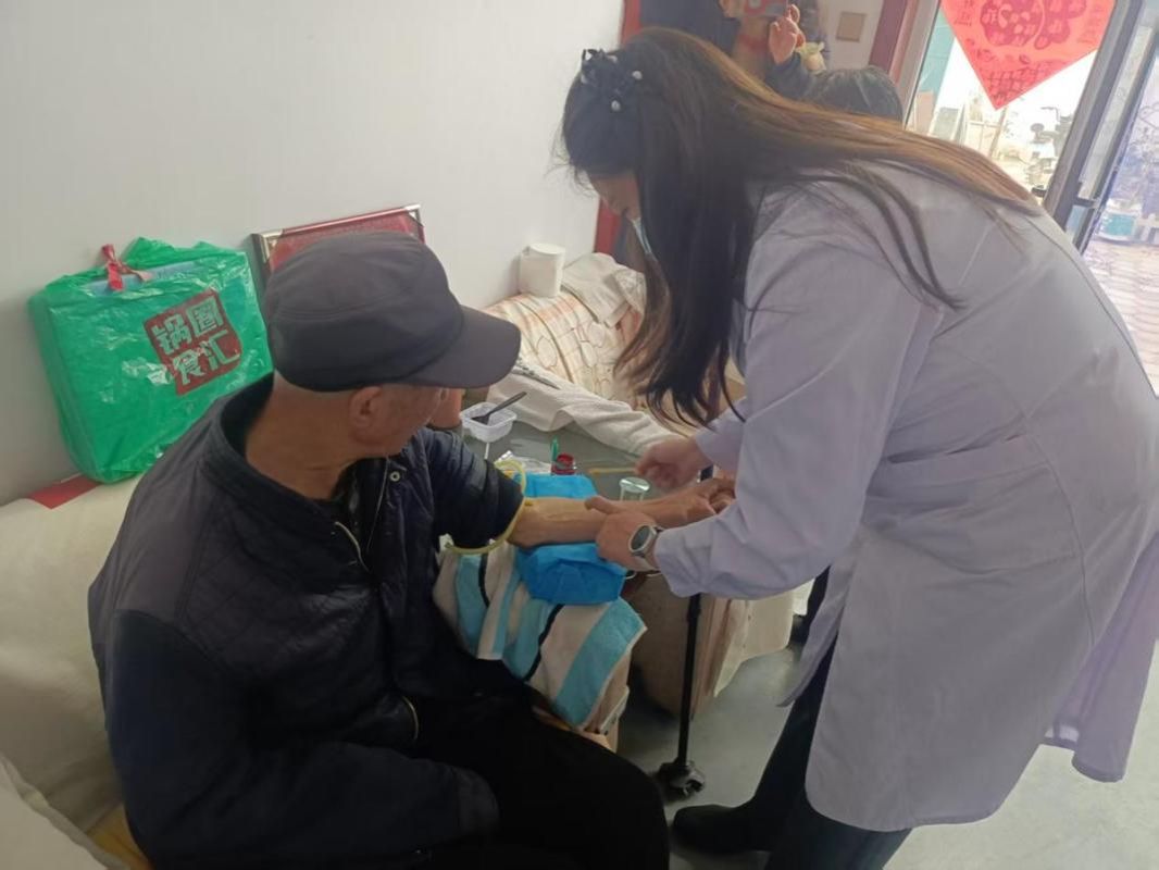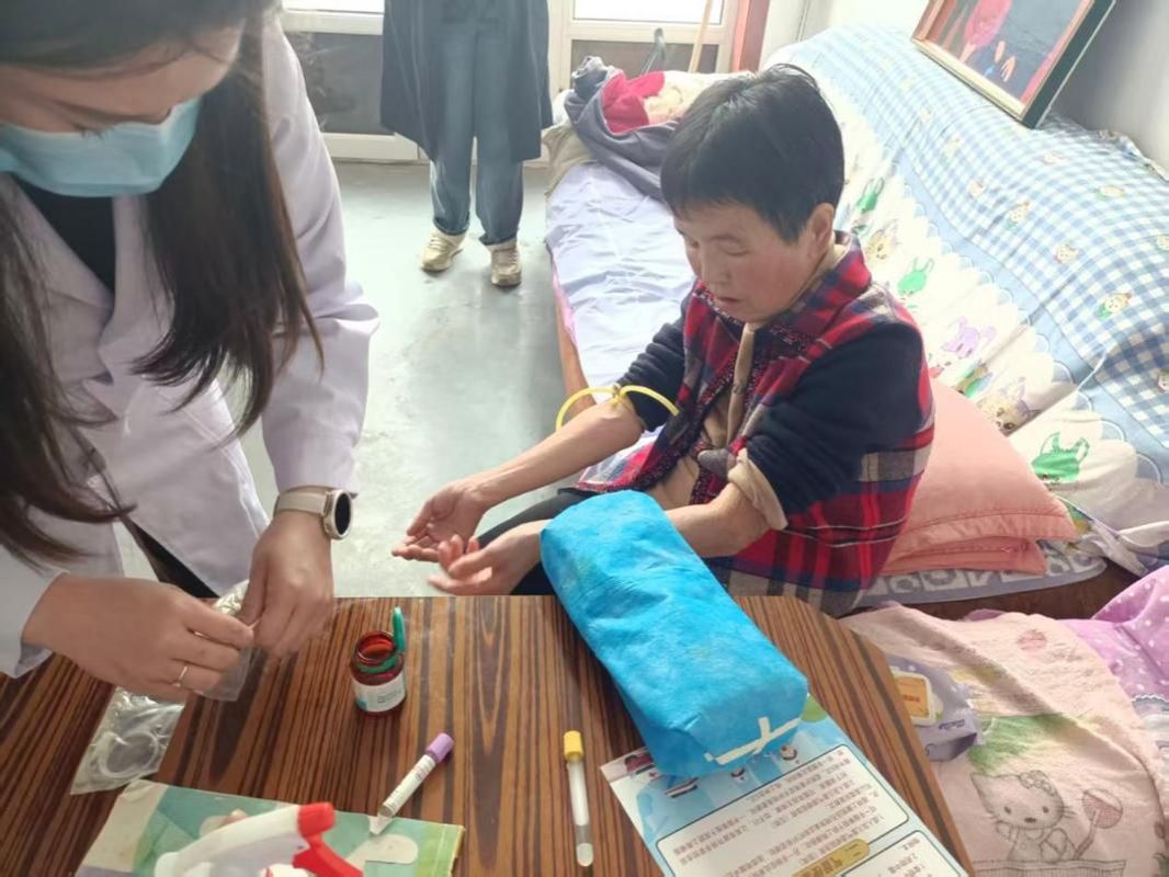 志愿者服务队针对部分高龄、行动不便的老人,在驻村干部的带领下,主动上门入户,背着医疗包穿梭在村巷之间,为他们细致采血,耐心询问身体状况并答疑解惑。